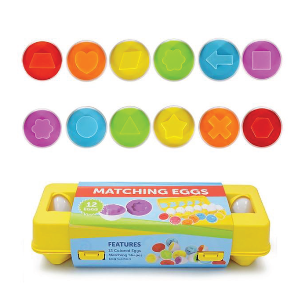 Ghép trứng là trò chơi giúp kích thích phát triển trí não ở trẻ. Bao gồm 12 quả trứng cùng 12 khối hình và màu sắc đa dạng được tách đôi ra hai phần riêng biệt. Một phần lồi và một phần lõm.